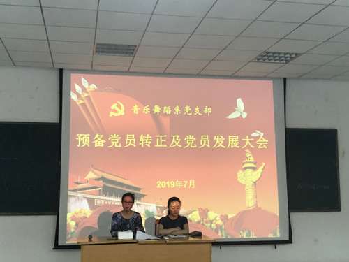 7月1日,音乐舞蹈系党支部在碧螺校区教学楼二楼阶梯教室召开了预备党员转正及党员发展大会。音舞系党支部副书记吴雪梅以及音舞系党支部全体党员参加了会议。