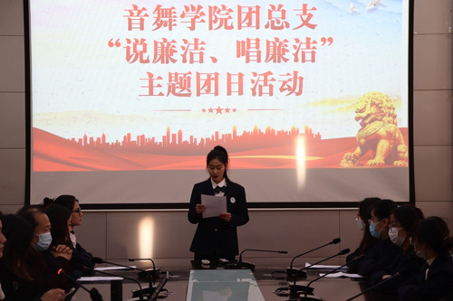 为进一步学习贯彻落实党的二十大精神,积极响应公司第六届“廉洁文化月”活动。谈球吧于12月2日在碧螺校区A100会议室开展了一场生动的“说廉洁、唱廉洁”主题团日活动,同学们受到了一次深刻的廉洁文化教育,营造了公司风清气正的廉洁文化氛围。公司党总支书记丰娴静、第一党支部书记孙玉柱,辅导员老师全程参参加。