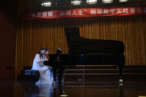 对于一名师范生来讲,钢琴学习中合奏、协奏的能力尤为重要。上半场四首联弹部分不但能够培养钢琴演奏者之间的合作意识,更能激发钢琴演奏者的音乐表现欲望和艺术感染力,在合作与统一中将钢琴音乐完美的表现出来,有利于提升员工演奏的协作能力。每组同学分别演奏了一首中国作品与一首外国作品,例如《青春舞曲》、《匈牙利舞曲》等,曲目虽短小,但同学们把每一首作品中的情感、速度、力度、语气等元素处理的细致入微、作品演绎的栩栩如生!下半场主要是独奏、合奏部分,其中解荣蓉同学演奏的阮与钢琴的合奏曲《云南回忆》,更是将音乐会推到了高潮,这首作品运用云南少数民族的音乐元素与素材,打破以往传统民乐曲的常规技法,音乐风格虚幻而抽象,节奏韵律充满动感,展现了一幅既是梦幻、朦胧、缥缈,却又略带真实的云南画卷仿佛置身其中,获得了观众的阵阵掌声。