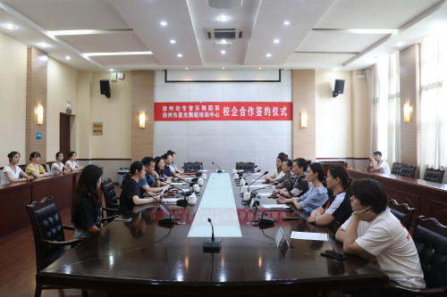 7月9日下午3:00,音乐舞蹈系与徐州市星光舞蹈培训公司校企合作签约仪式在碧螺校区A100会议室举行,公司党委委员、副董事长邓宪亮、教务处处长王宁,徐州市星光舞蹈培训公司董事长薛黔星以及公司音乐舞蹈系的师生代表参加了此次会议。